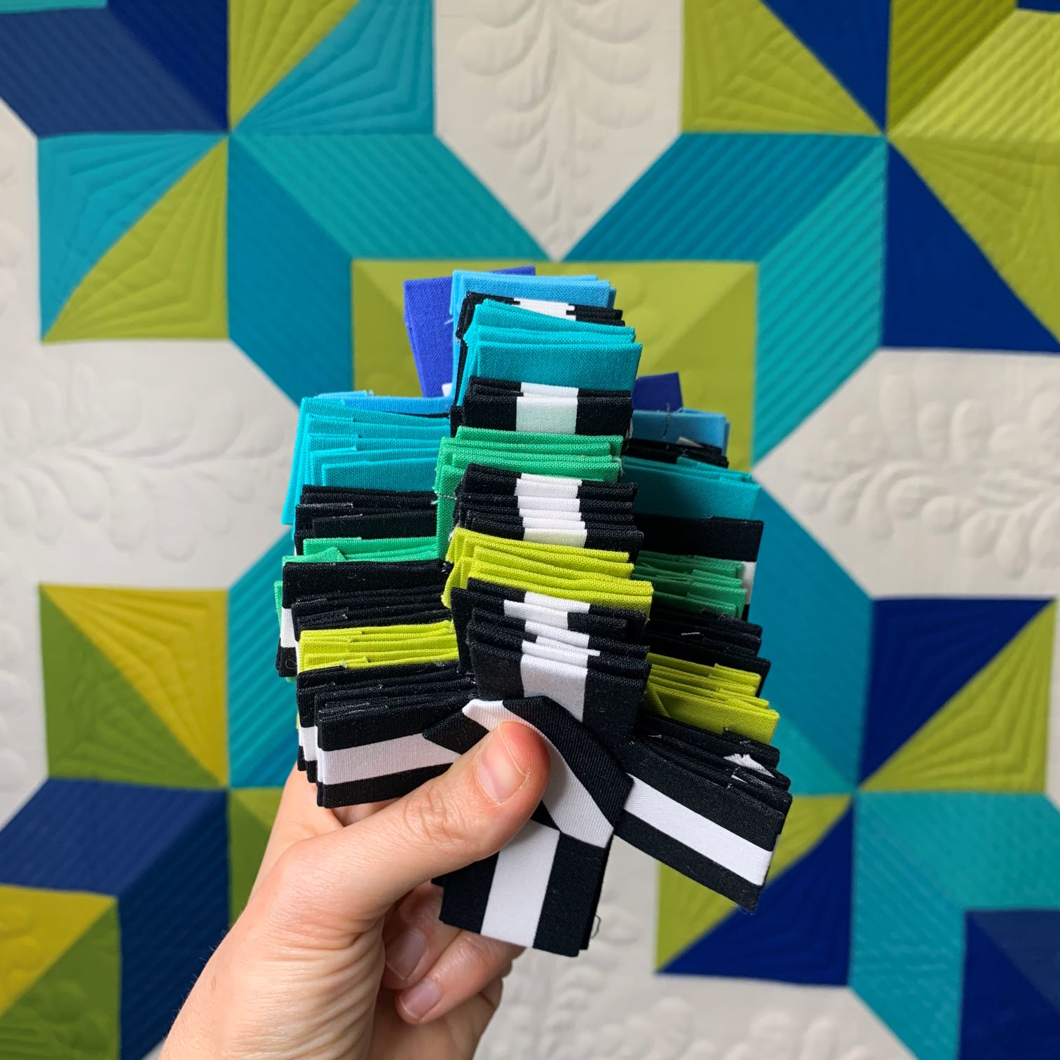 This PDF pattern includes 3 specific planned color ways using Tiny Beasts + Tiny Coordinates, Mythical Solids by Tula Pink, and the original solids by Tula Pink + Black and white tent stripe.  Fabrics requirements are calculated using solids so you have a starting point for how much fabric you may need for the quilt, along with backing construction methods for each.  This pattern is great for your favorite fabrics to really make them shine!  Fussy cutting your fabrics will make this quilt the star of the show.  This pattern also works great for scrappy fabrics.