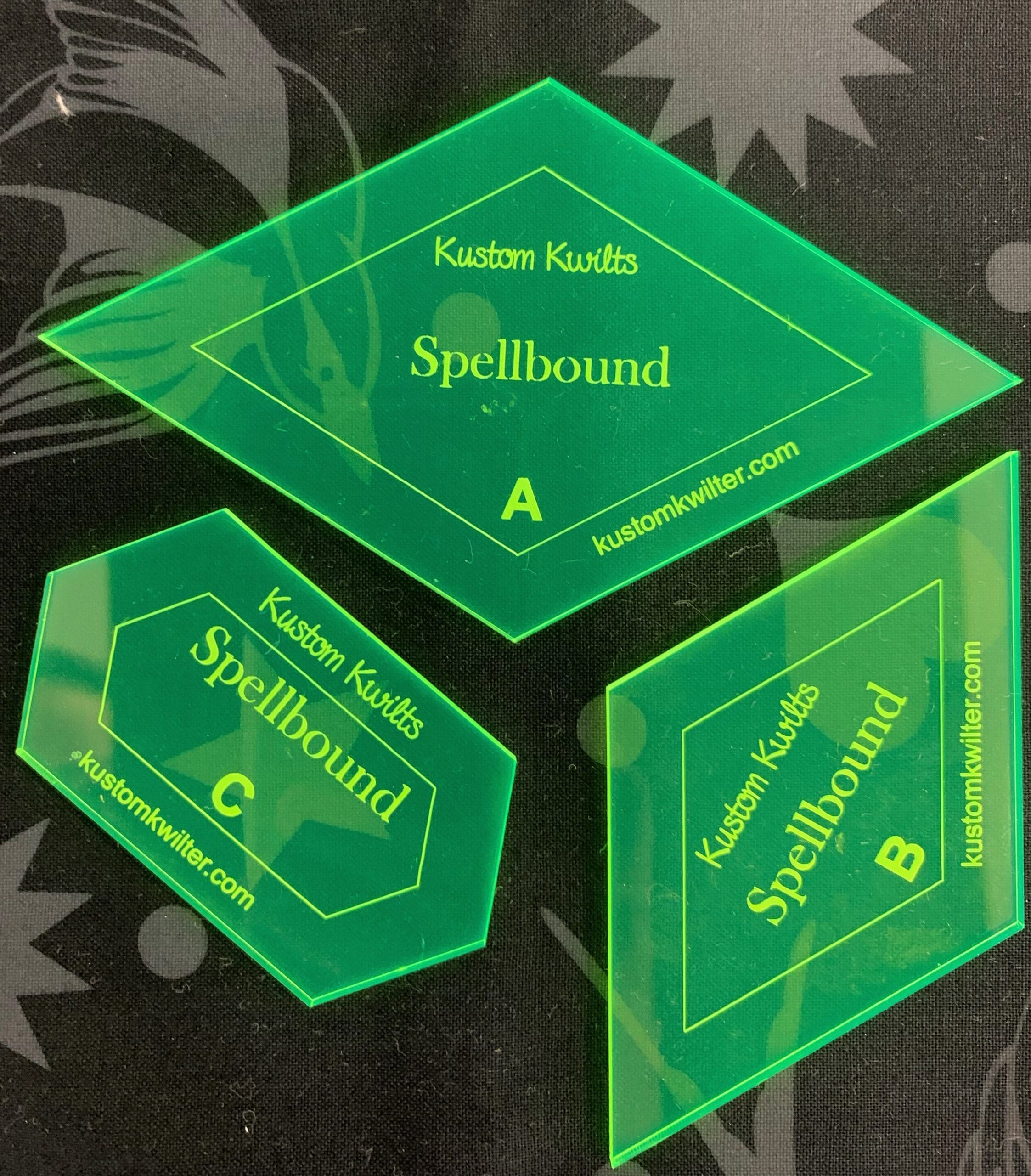 - Complete set of three acrylic fussy cutting templates with 3/8″ seam allowance.